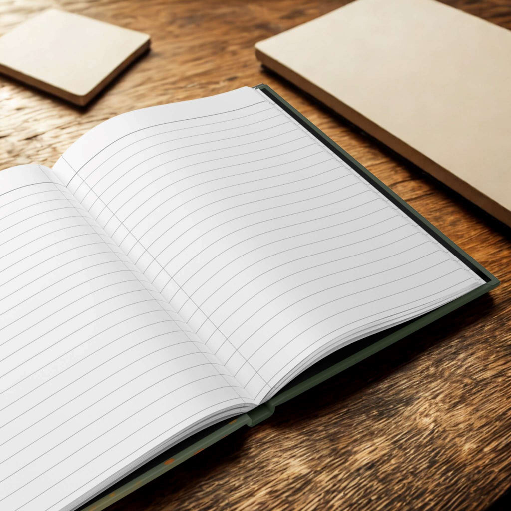 - Hardcover for durability with a flexible spine that lies flat when open