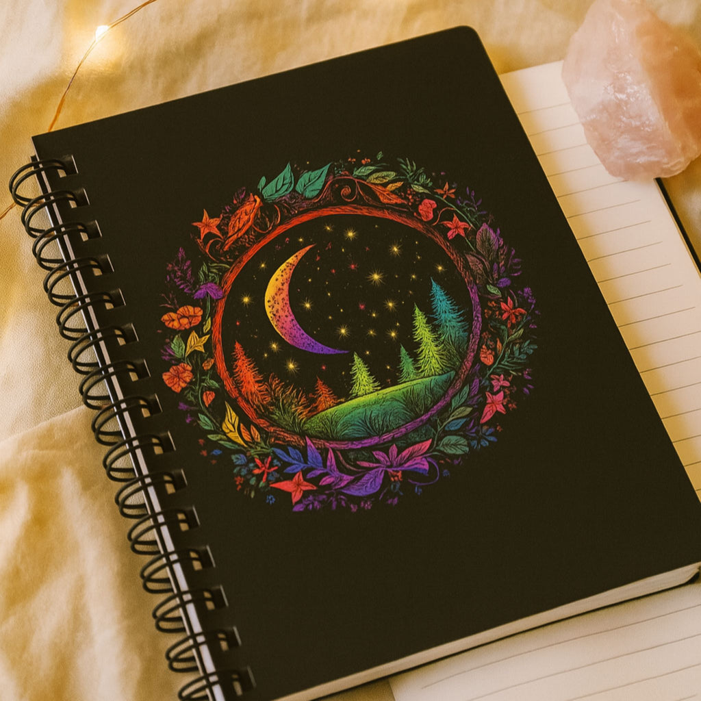 Capture your most enchanting thoughts in this celestial forest spiral notebook, designed for creatives who crave a hint of magic in every page. This 5x7” notebook is perfect for journaling under candlelight, keeping witchy reflections, or mapping your cozy autumn rituals. With 150 lined pages and a durable spiral binding, it’s ready to go wherever inspiration strikes, just add a pen and your favorite tea. Buy now to bring seasonal wonder into your writing rituals.