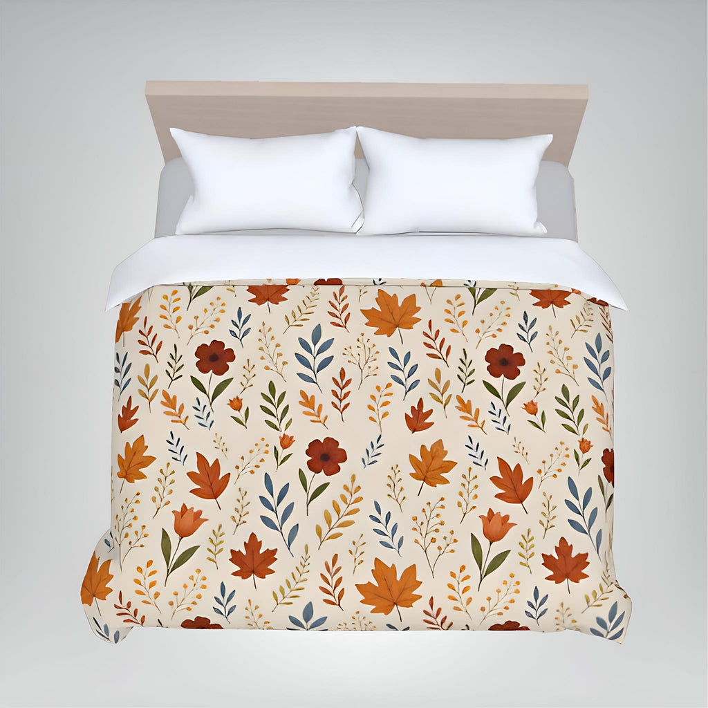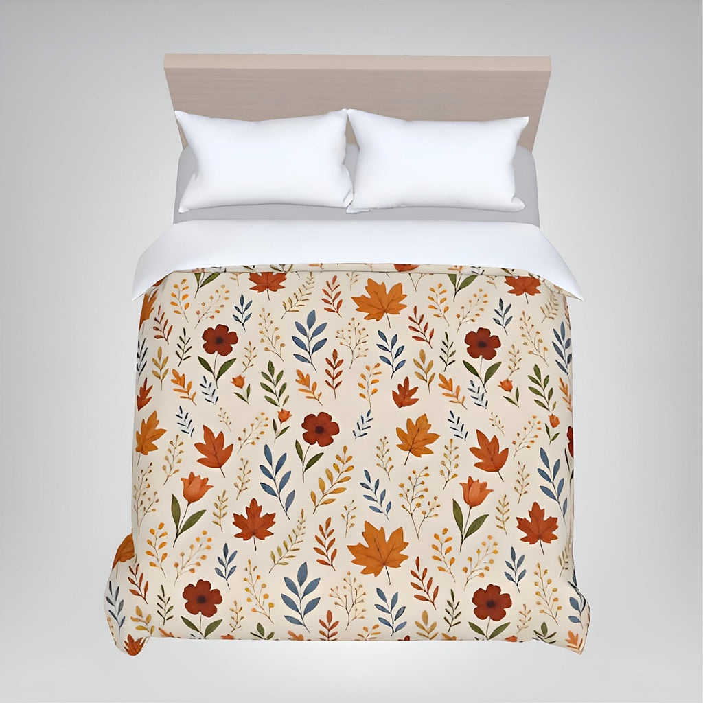 As the days soften and the light turns golden, this autumn floral cotton sateen duvet becomes the heart of your seasonal retreat. Mapleveil layers warm maple leaves, soft orange blooms, and muted blue-green stems across a creamy base, creating a gentle fall rhythm that feels welcoming in any bedroom. Crafted from 100% cotton sateen, it’s smooth, breathable, and perfect for adding cozy autumn depth to your home. Matching shams are available to complete your set. Order now to bring warm seasonal comfort into your bedroom tonight.