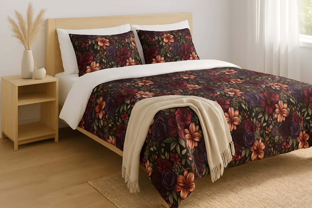 From candlelit winter nights to bright spring mornings, Midnight Bloom complements soft gothic, bohemian, and modern romantic spaces alike. Its moody florals pair beautifully with dark wood, brushed gold, or velvet textures — creating a layered, cozy retreat that feels personal and timeless.