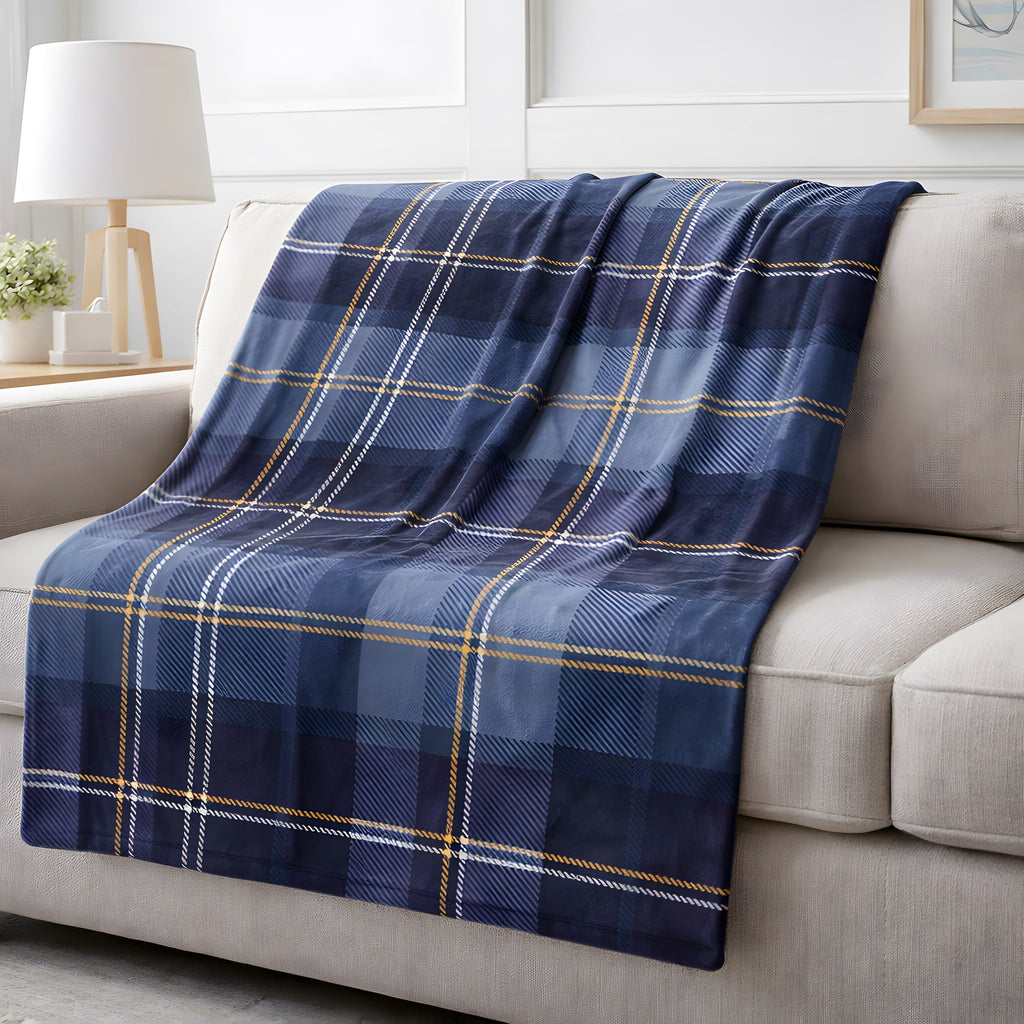 Luxury Plaid Blanket Crafted with Breathable Velveteen or Sherpa