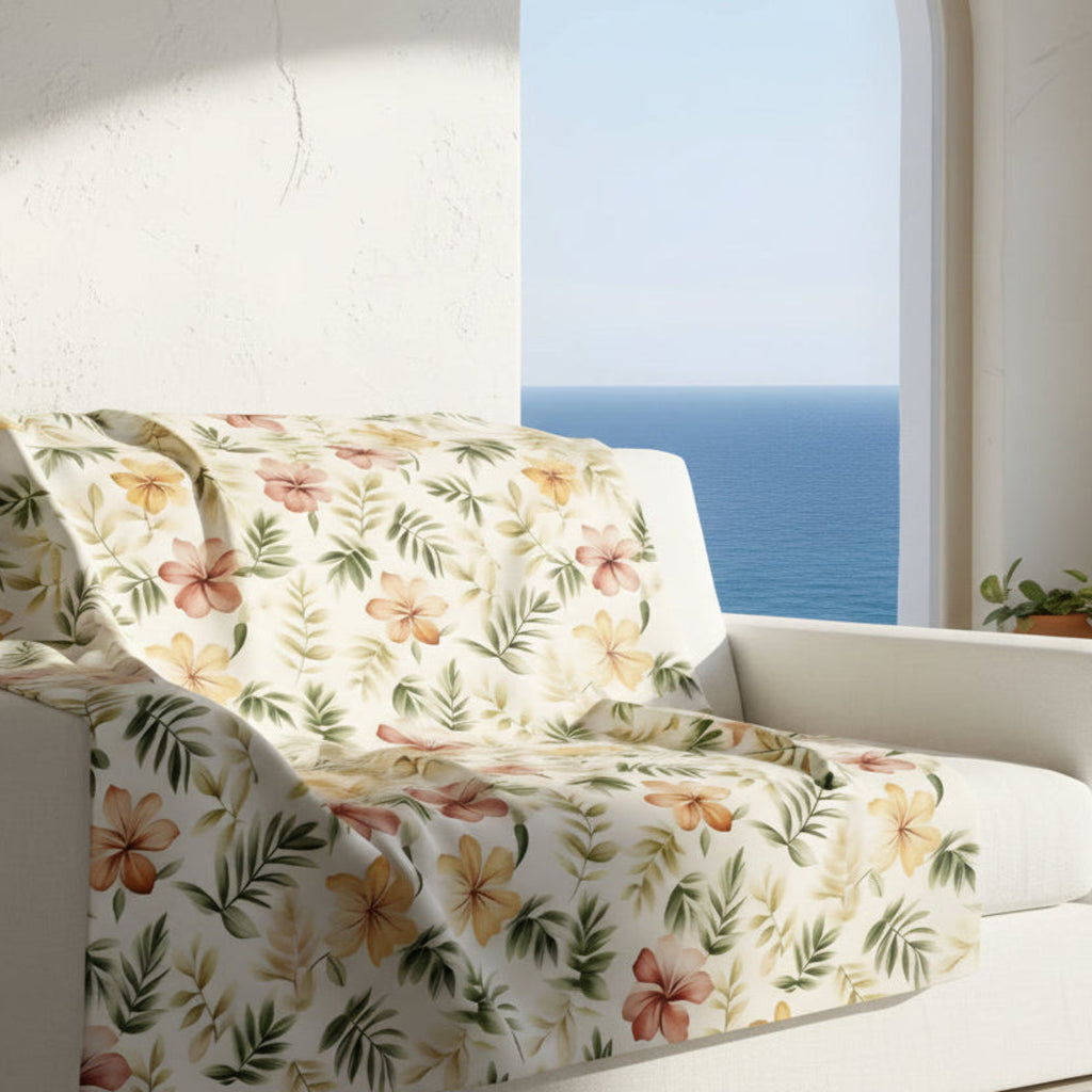 Breathe in seaside calm with warm florals and velveteen-soft comfort.