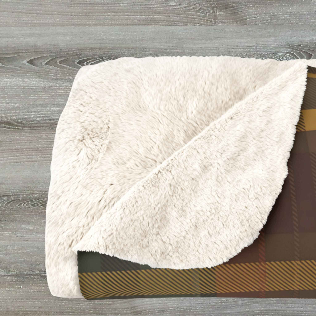 As twilight settles beyond the trees, this plaid throw blanket invites you into a world of comfort. The Cabin Check pattern, woven in deep forest green, rustic red, and muted gold, captures the soul of autumn lodges and mountain cabins. Choose sherpa for a cloud-soft fuzzy underside or velveteen for a smooth, plush white back. Sized in Standard Throw (50x60") and Oversized (60x80"), this blanket drapes beautifully across couches, beds, and cozy reading nooks. Order now to bring rustic warmth into your home tonight.