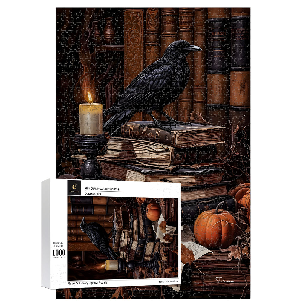 A dark academia raven jigsaw puzzle for deep-focus, candlelit nights.