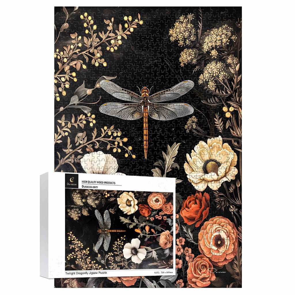 Embark on a mystical journey with our "Twilight Dragonfly Wooden Jigsaw Puzzle for Adults," featuring a captivating Gothic cottagecore scene. Unravel the enchanting twilight realm piece by piece, revealing a dragonfly nestled amidst beautiful flowers. Whether you choose the 500-piece, 20x15-inch puzzle or the 1000-piece, 30x23-inch challenge, this brain-boosting activity transports you into a whimsical world.